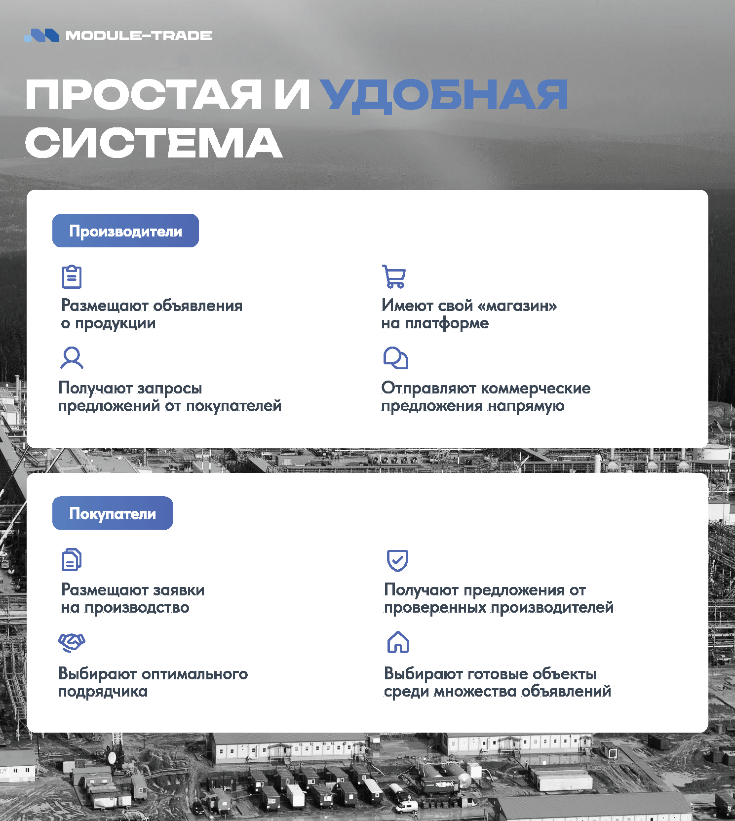 — первая специализированная онлайн торговая площадка для покупки, продажи и аренды модульных конструкций. Всё для организации строительных площадок и вахтовых поселков.