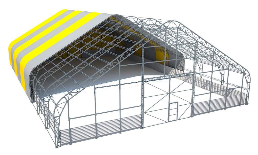 Тентовые ангары: состоят из металлического каркаса и тентового покрытия. Для временных мероприятий и сезонного использования.